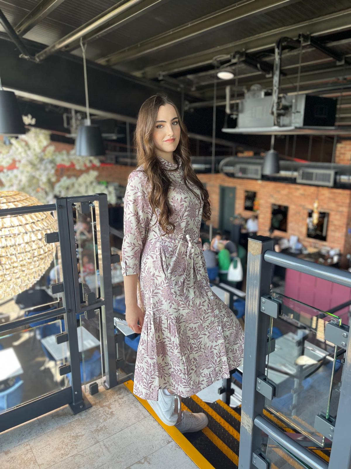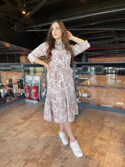 Indulge in the enchanting allure of our Floral Spray Dress, where blossoms dance across the fabric in a symphony of color.