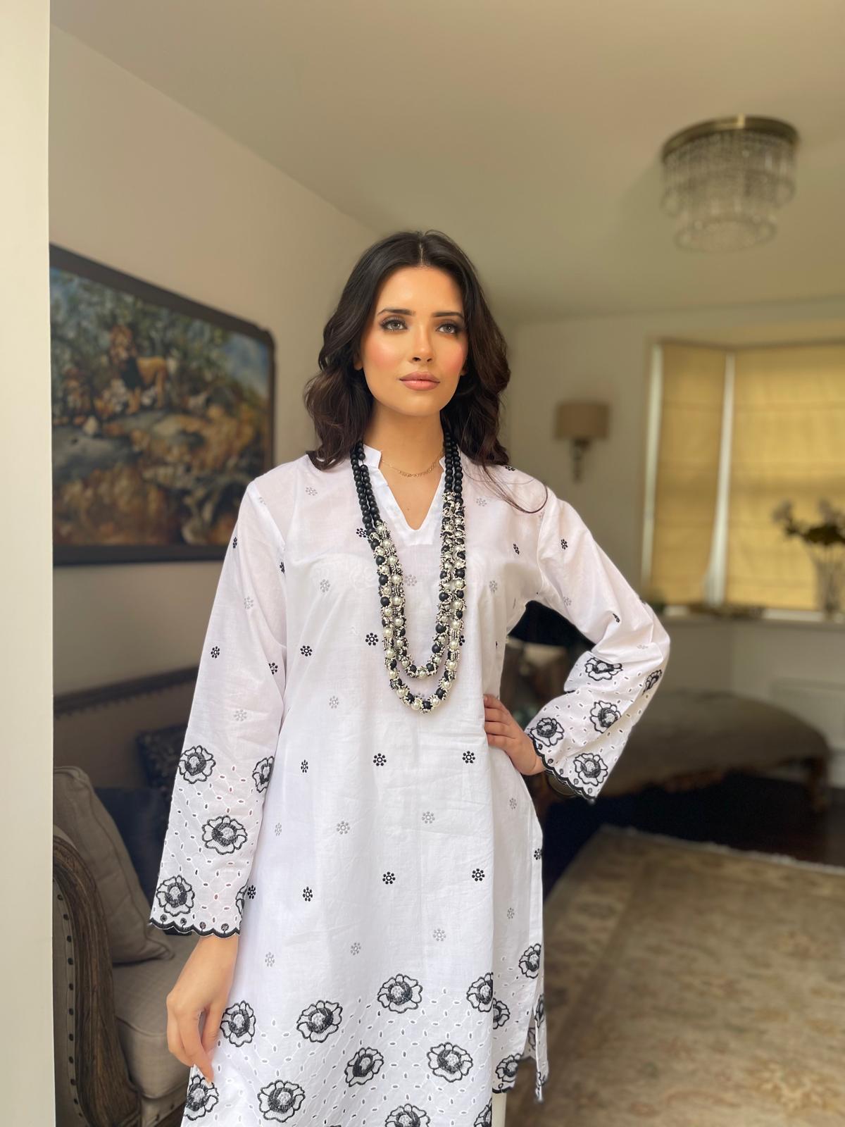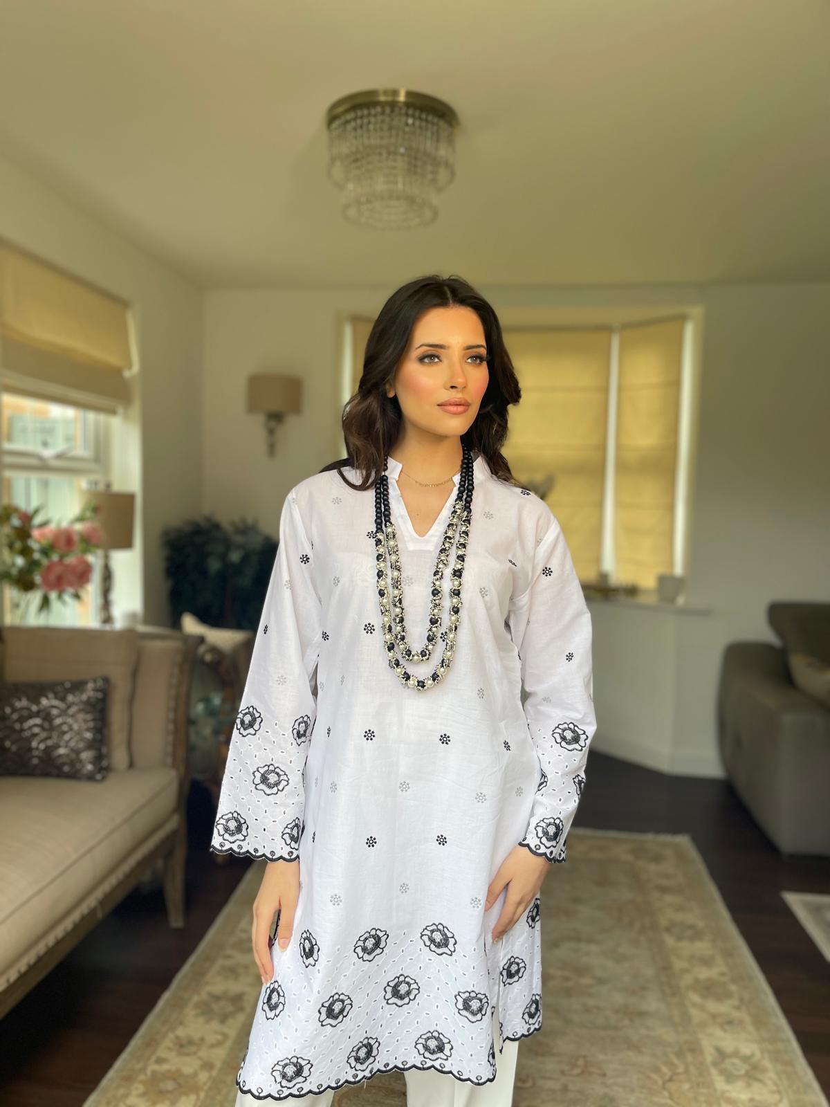 Elevate your wardrobe with our exquisite white kurta top featuring intricate cut embroidery detailing on the sleeves and base. Crafted with precision, this versatile piece exudes elegance and sophistication. Available in a variety of colors, it's the perfect blend of style and tradition. Redefine your look with timeless charm.