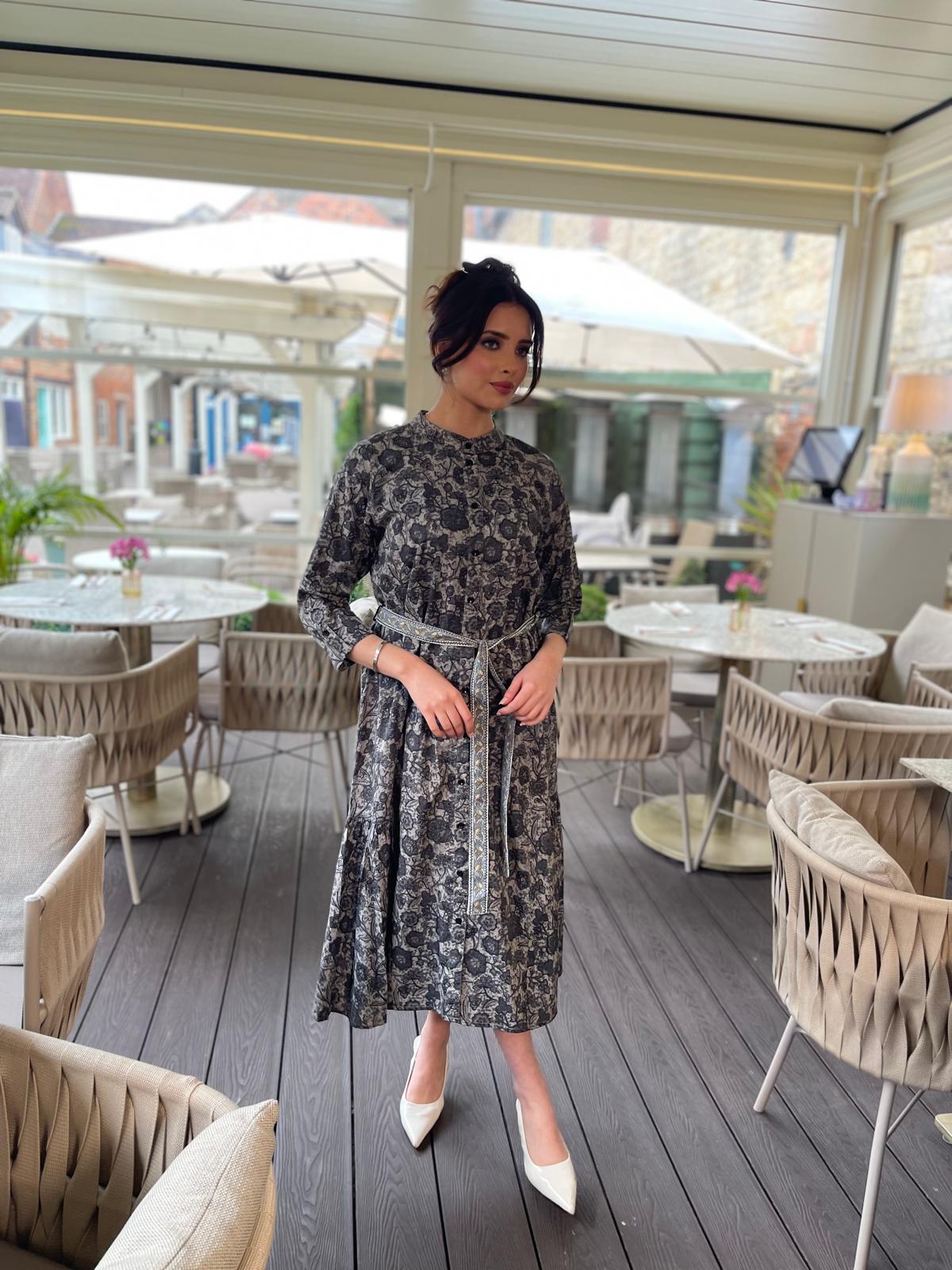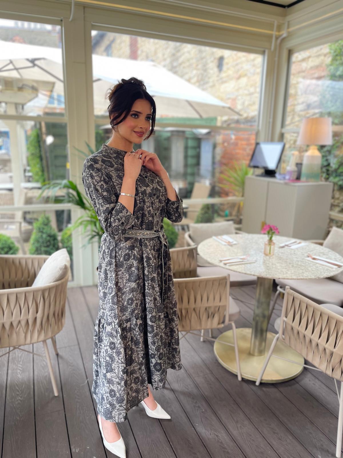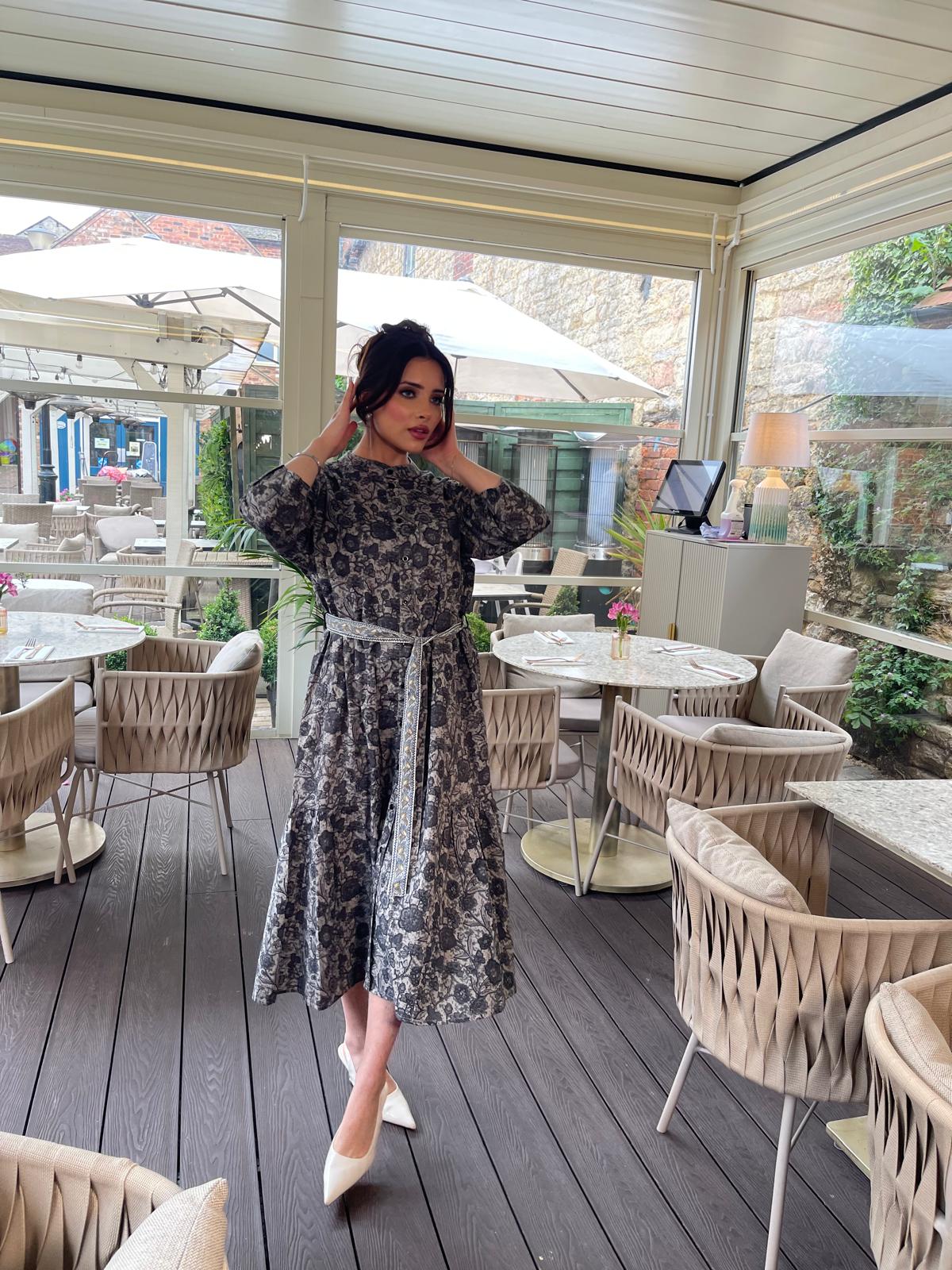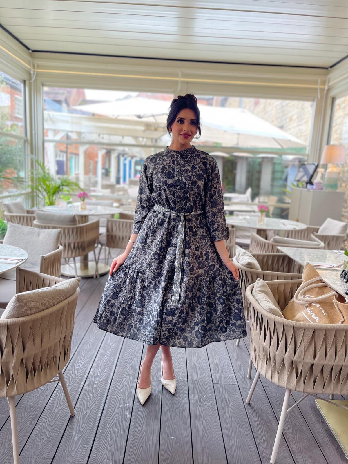 Discover the effortless elegance of our Silver Skies Midi Dress. This ethnic dress features a midi length, perfect for any occasion. Crafted from premium fabrics, our dress offers both comfort and style. Elevate your wardrobe with this versatile piece.