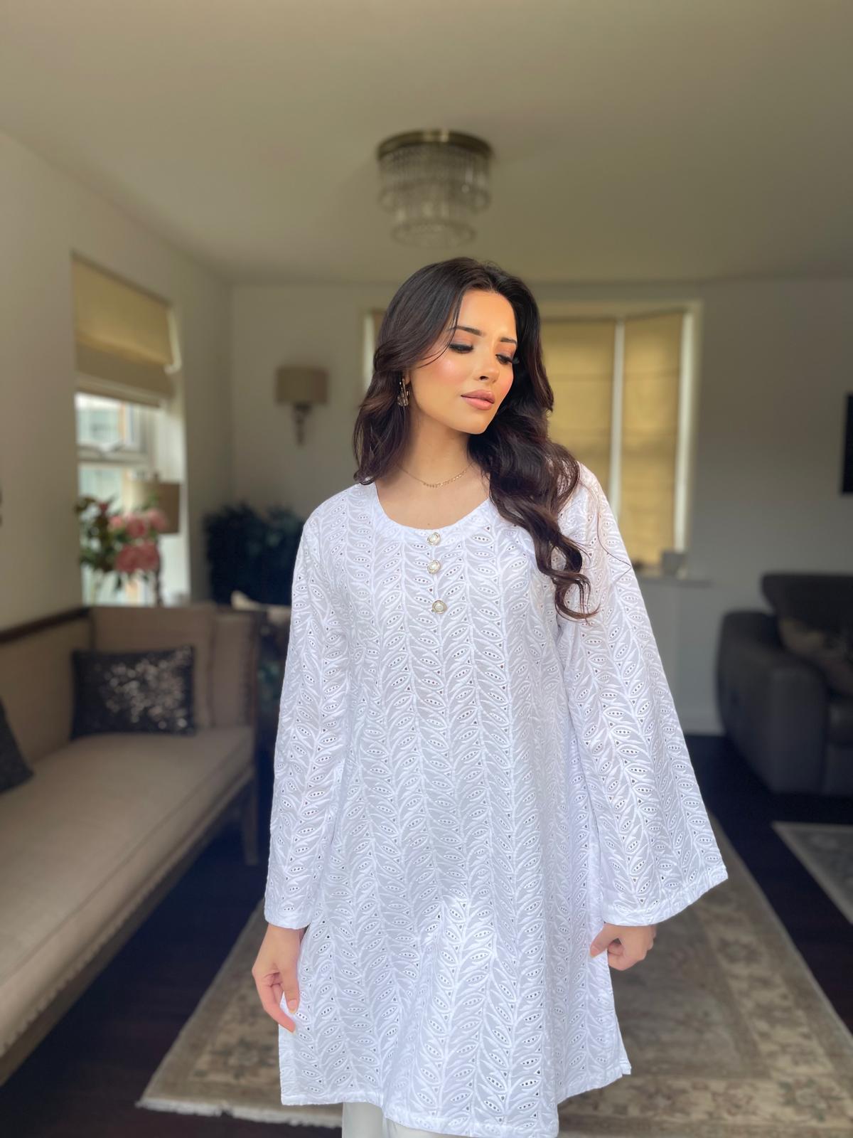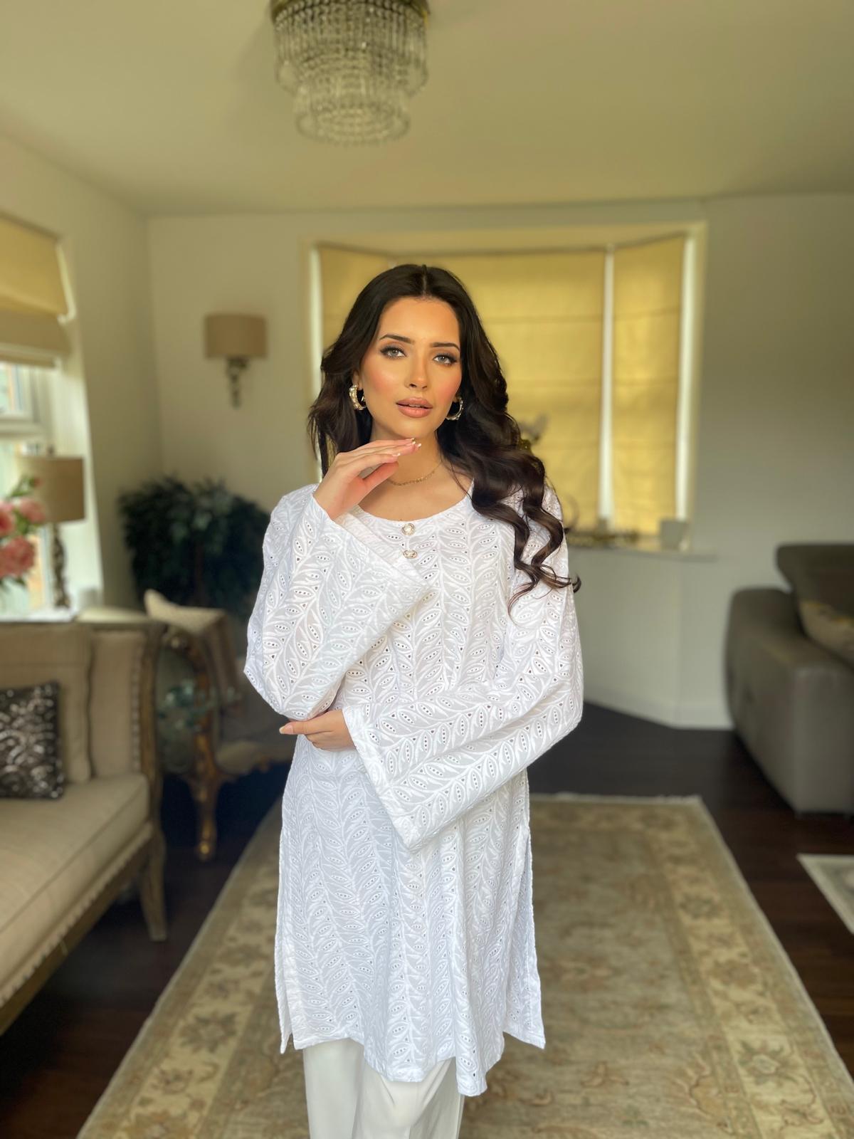 Wrap yourself in timeless elegance with our White Chicken Kurta. Crafted with care, this kurta features delicate buttons and bell sleeves, adding a touch of sophistication to your ensemble. Embrace comfort and style effortlessly with this versatile piece, perfect for both casual outings and special occasions.
